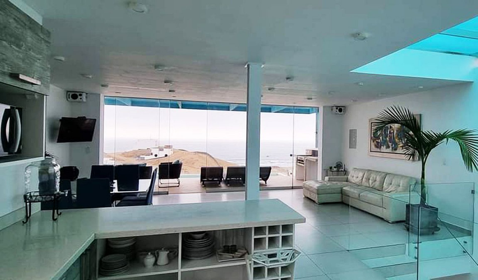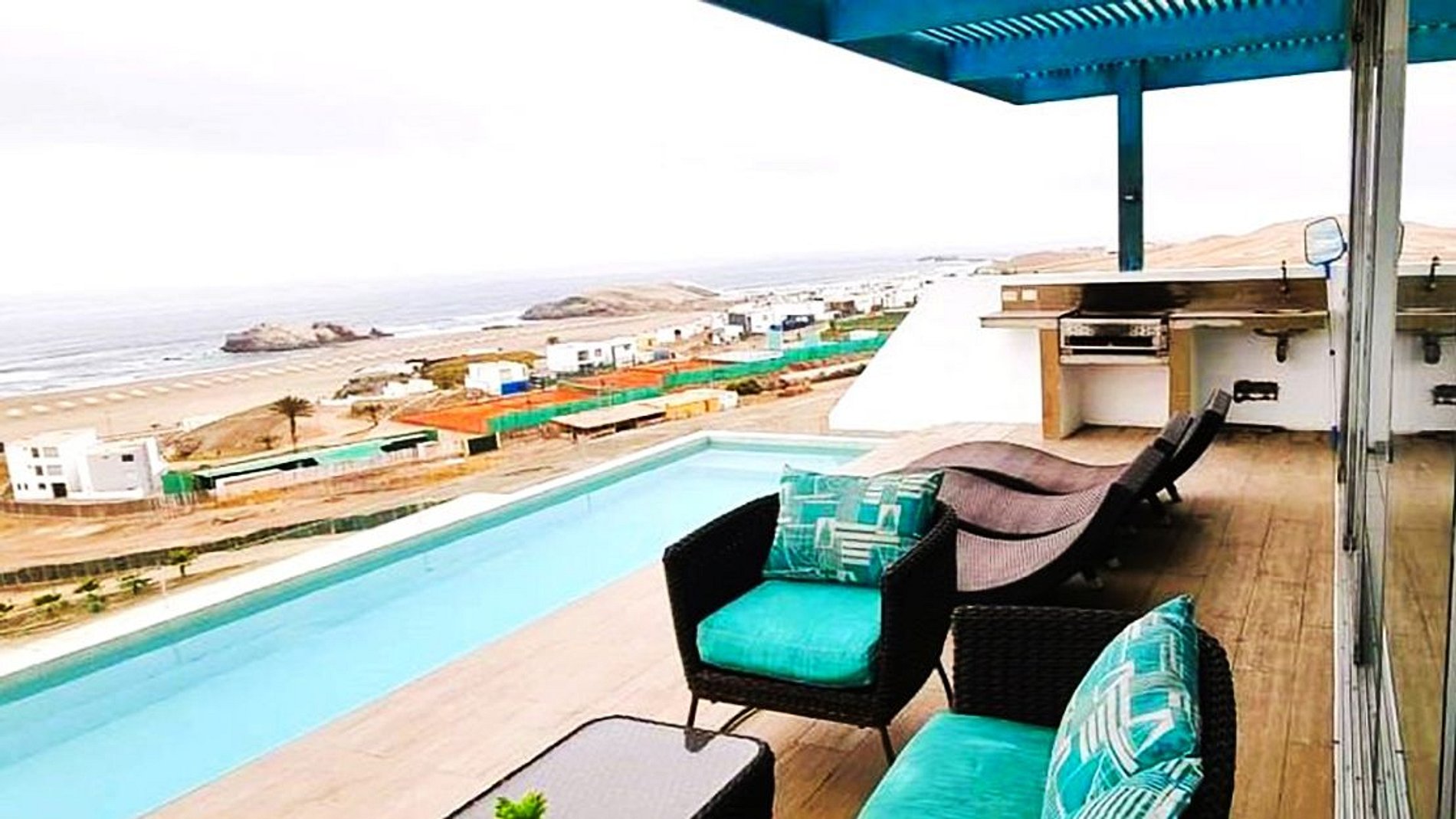 Beach house within the private condominium La Honda at km 124.5 south of Lima, to enjoy the most beautiful sunsets. It has a living room, dining room, terrace, barbecue, swimming pool with a beautiful view of the sea. It has 4 large bedrooms: two of them with their own bathroom, the 5th. bedroom located on the third level with bathroom and 1-person cabin.