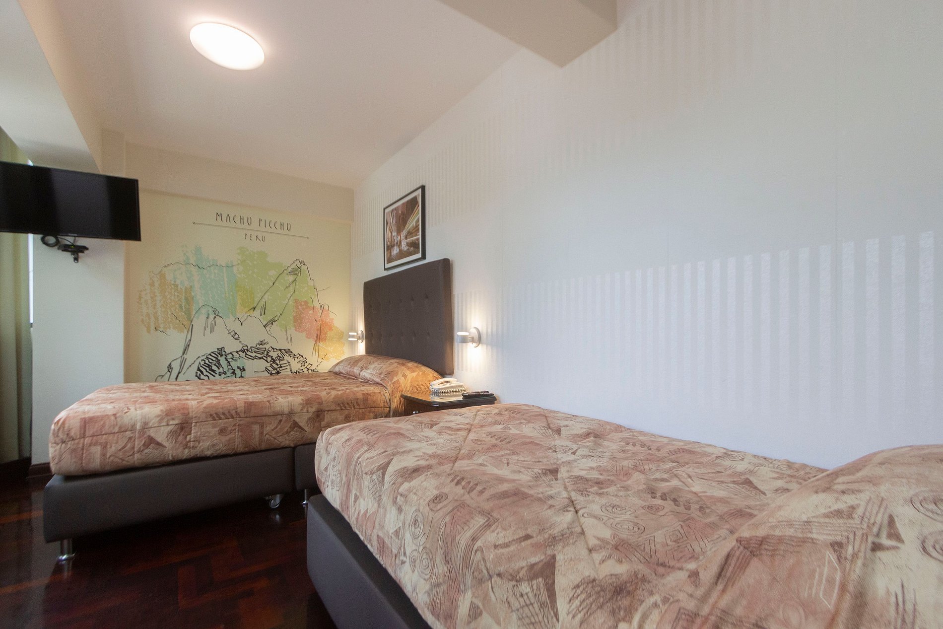 Double Room in Hotel in Miraflores - Angamos Oeste, esta habitación doble cuenta con 2 camas individuales: 02 Camas de 1 1/2 plaza, tiene TV plana de 32", canales por Cable. Cada habitación tiene baño privado con artículos de aseo gratis, secador de cabello. Tiene acceso a Wi-fi, zona de escritorio, caja fuerte, servicio de despertador, friobar, teléfono. Además incluye desayuno buffet gratuito en el Comedor del Hotel.