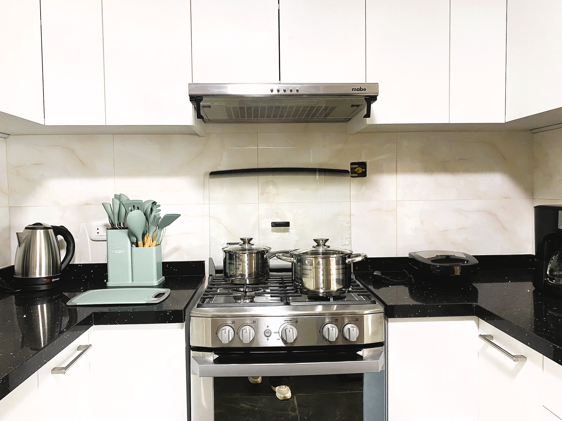 Sala comedor amplia, cocina totalmente equipada y lavandería.
